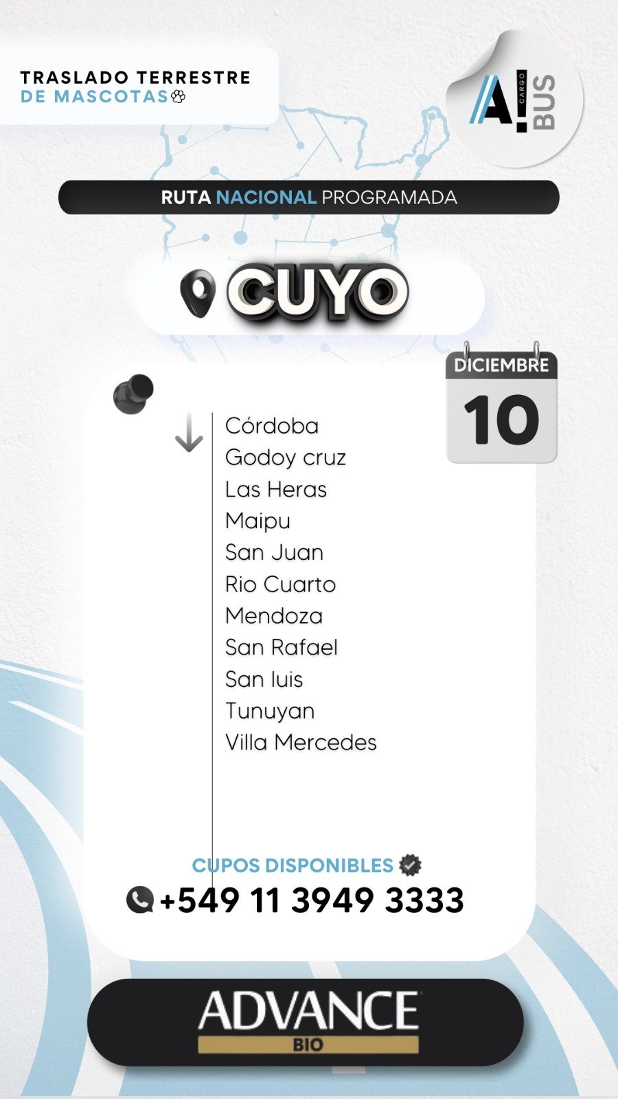 También tenemos una división nacional “Animal Cargo Bus”, con vehículos propios y exclusivamente para mascotas, donde recorremos el interior del país.
